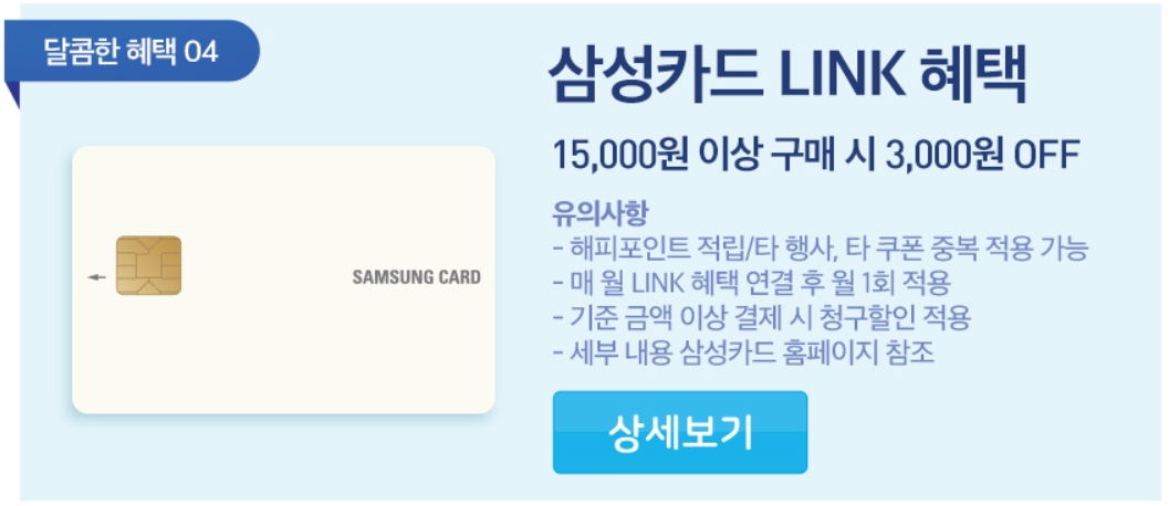 해피포인트 적립 및 타 행사, 쿠폰과 중복적용 가능합니다.