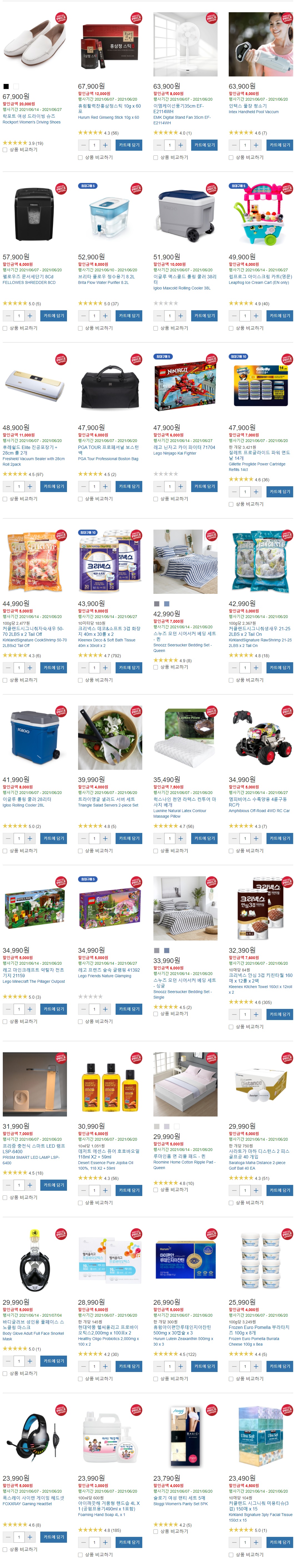 커클랜드 화장지, 일레트로룩스 청소기, 푸마 반바지, 올젠 재킷, 이탈리안홈 소파, 크록스 샌달, 아이리스 마스크, 테팔 프라이펜