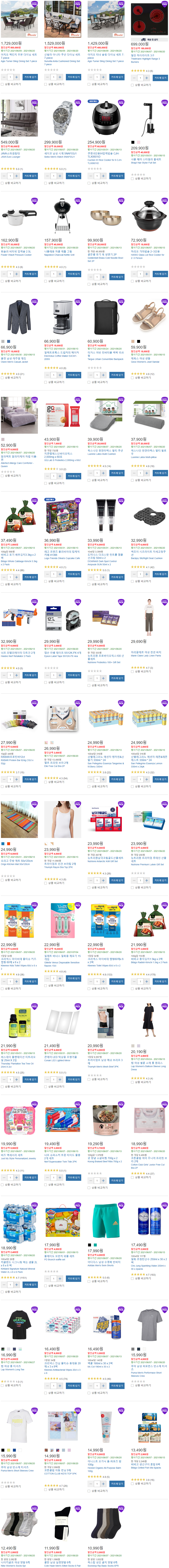 틸만 하이라이트, 세이코 시계, 쿠첸 밥솥, 올젠 자켓, 일렉트로룩스 드립커피 메이커, 비비고 배추김치, 비비고 총각김치, 크리넥스 마이비데, 푸마 티셔츠, 나이키 양말