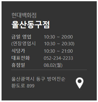 ※  현대백화점 울산동구점 8월 휴점일