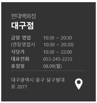 ※  현대백화점 대구점 8월 휴점일