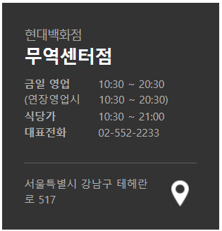 현대백화점 방문 시 휴점일을 꼭 확인하시고 방문하시기 바랍니다.