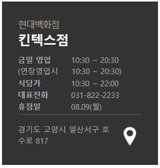 ※  현대백화점 킨텍스점 8월 휴점일