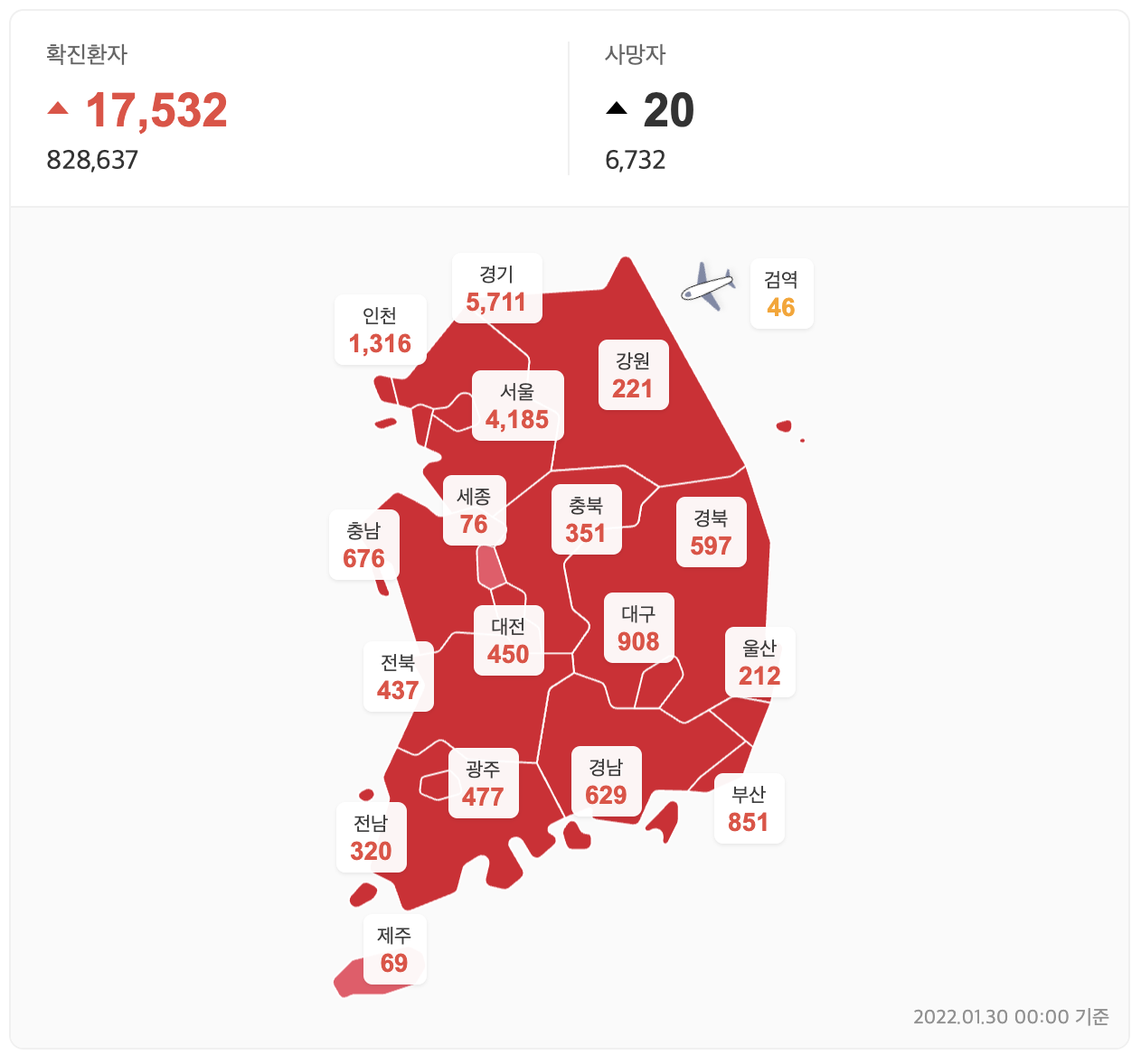 2022년 1월 30일 총 확진자 : 17,532명