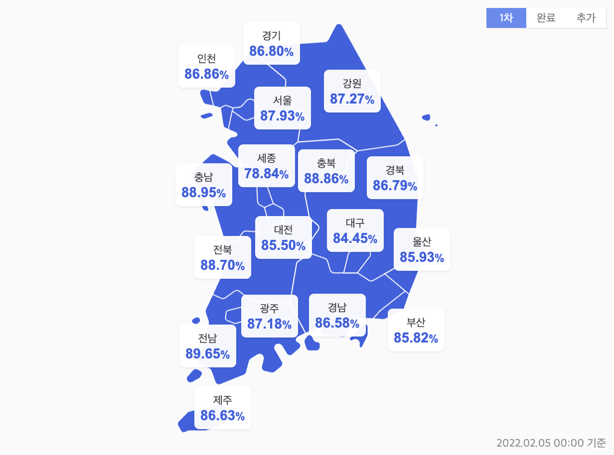 - 2022년 2월 5일 백신 접종 현황 -