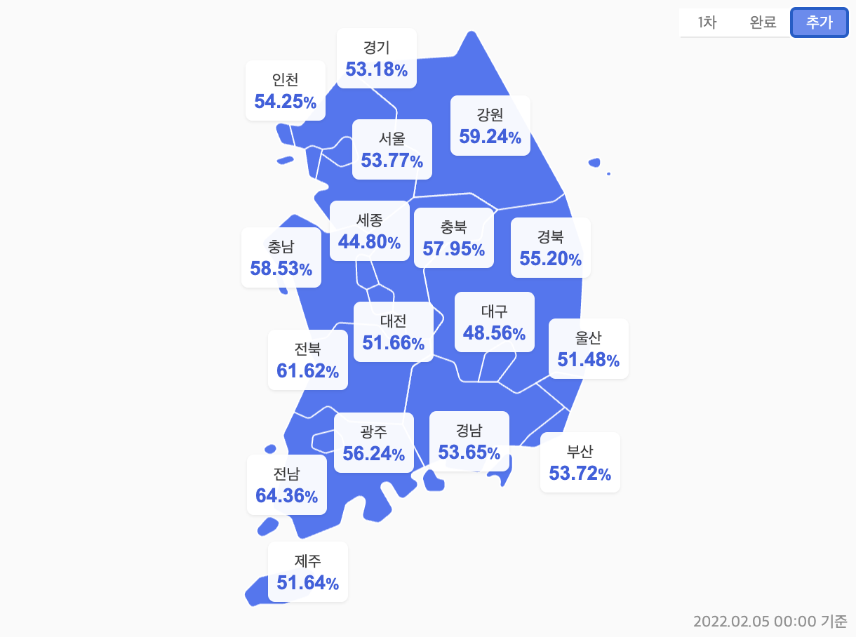 - 2022년 2월 5일 백신 접종 현황 -