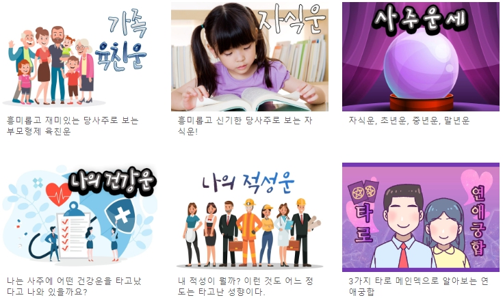 많은 유료 사주 및 운세, 애정운 서비스이며, 부담없는 금액으로 확인이 가능하며, 일대일 상담도 가능합니다.