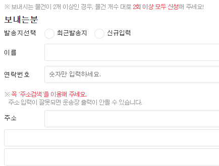 ※ 택배 접수 시 주의사항