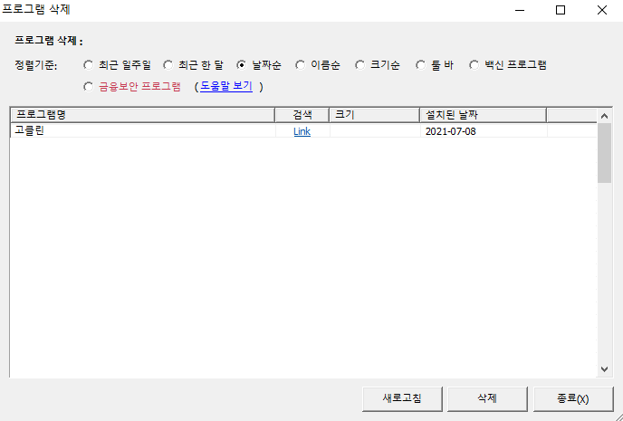 고클린을 이용해 몇 번의 클릭만으로 쉽게 프로그램을 지울 수 있습니다.