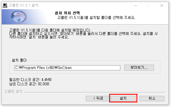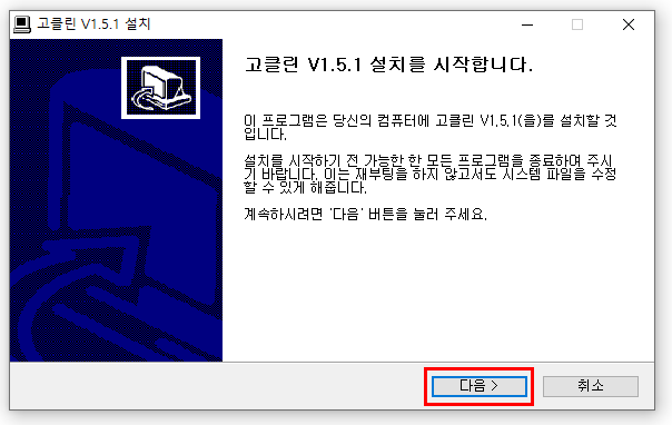 다운로드 받은 고클린 설치파일을 더블클릭하여 설치를 진행합니다.