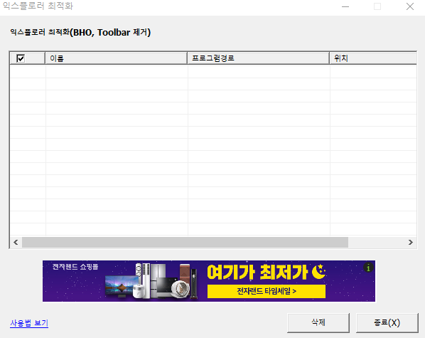 불필요한 BHO, 툴바가 있을 경우 클릭하여 제거하시면 됩니다.