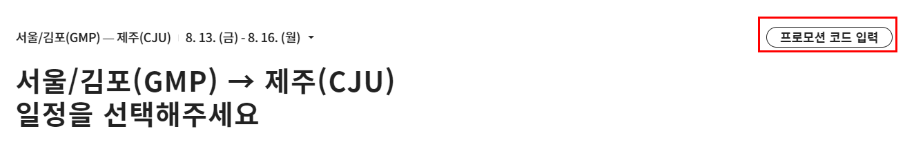 예시로 8월 13일(금) ~ 8월 16일(월) 연휴기간의 에어프레미아 제주도 비행기 표 가격비교를 해보겠습니다.