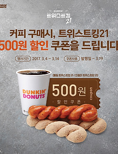 반응형 던킨도너츠 3월 이벤트1 던킨도너츠 2017년 3월 프로모션 주변에서 흔히 접할 수 있고, 우리의 입을 달콤하게 하는 던킨도너츠의 다양한 프로모션이 존재합니다. 특정 날짜, 특정 기간동안만 진행되는 이벤트라, 사전에 미리 알고간다면 더욱 저렴하고 알뜰한 구매를 할 수 있습니다. 2017년 3월 던킨도너츠 이벤트에 대해 알아보도록 하겠습니다. 1. '트위스트킹 500월 할인' 던킨도너츠 커피(병음료 제외) 구매시 '트위스트 킹'을 500원 저렴하게 구매할 수 있는 쿠폰이 증정되는 쿠폰증정이벤트입니다. 통밀 트위스트킹과 인절미 트위스트킹 중 택1만 쿠폰적용이 되고, 쿠폰발행매장에서만 사용가능합니다. 2. '트리플 팩' 통밀 트위스트킹 1개와 인절미 트위스트킹 2개를 포함한 3개의 트위스트킹을 약 33% 저렴하게 구매할 수 있는 세트할인 이벤트입니다. 할인폭이 큰 이벤.. 2017. 3. 5. 이전 1 다음 반응형