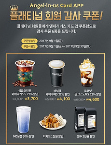 반응형 무료쿠폰1 앤제리너스 9월 이벤트 앤제리너스 9월 이벤트 정리 9월이 얼마 남지 않은 지금 앤제리너스에서 많은 이벤트가 진행되고 있습니다. 사은품 판매 이벤트부터 특정등급 혜택까지 다양하게 구성되어 있습니다. 그럼 이번 9월달 앤제리너스 이벤트에 대해 정리해보겠습니다. 1. cool 핸디 선풍기 모든 음료 구매 시 6,900원 모든 음료를 구매 시, 핸디선풍기를 6,900원에 구매 할 수 있는 이벤트입니다. 곰돌이와 토끼중 택1로 선택해야 합니다. - 이벤트기간 - 2017. 07. 28 ~ 소진시까지 - 주의점 - 한정수량으로 조기소진될 수 있습니다. 다른행사와 중복 불가능합니다. 일부점포에서 이벤트 제외입니다. 2. 플래티넘 회원 감사 쿠폰! 엔제리너스 플래티넘 회원에게만 쿠폰증정이벤트입니다. 플래티넘 회원이신경우, 엔제리너스 APP.. 2017. 9. 22. 이전 1 다음 반응형