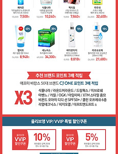 반응형 화장품할인1 2017년 8월 올리브영데이 이벤트 매달에 한번씩 올리브영에서 '올리브영데이'라고 특정기간에 가격할인 행사를 합니다.매월 25일, 26일, 27일 총 3일동안 진행하고 있습니다. 온라인과 오프라인매장 둘다 이벤트가 진행하고 있습니다. 일부 한정 품목은 한정수량만 할인된 금액에 판매하는 상품이 있습니다.또한, 특정브랜드 상품을 구매 시 CJ ONE 포인트가 3배 적립 이벤트도 진행중입니다. 올리브영 VIP 회원, VVIP 회원분들에게 특별 할인쿠폰도 증정하고 있습니다. VIP 회원 : 5% 할인쿠폰 지급(최대 할인 한도 : 5,000원)VVIP 회원 : 10% 할인쿠폰 지급(최대 할인 한도 : 20,000원) 추가로, 위에 상품들을 뿐만아니라 다른 상품들도 많은 할인이 되었습니다.상품군이 너무 많아 60% ~ 40% 상품들만 정리해보겠습니다.. 2017. 8. 27. 이전 1 다음 반응형